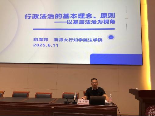 | 浙江一剑律师事务所胡泽邦律师受邀为金华市婺城区领导干部法治能力提升专题培训班授课。胡律师以“基层法治”为视角,聚焦“行政法治的基本理念与原则”,结合基层治理实践阐释了现代行政法的核心立场与价值理念,为领导干部理解行政法治提供了理论根基。参酌德国、美国等国的法学理论与典型案例,系统讲解了行政法的基本原则与规则,既有国际视野的理论深度,又紧密贴合基层执法场景。胡律师还着重分析了基层法治在推进治理现代化中的重要性,既总结了近年来基层法治建设的阶段性成效,也直面当前存在的难点堵点,并从制度完善、能力提升等维度提出优化路径,为基层干部破解实践难题提供了思路参考。胡律师的授课内容扎实、干货满满,助力全区领导干部进一步树牢法治思维、提升依法履职能力,为实现高水平法治婺城贡献力量