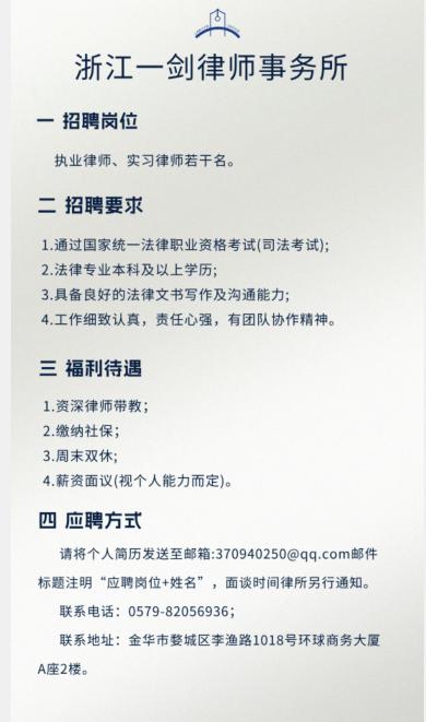招聘执业律师、实习律师若干名